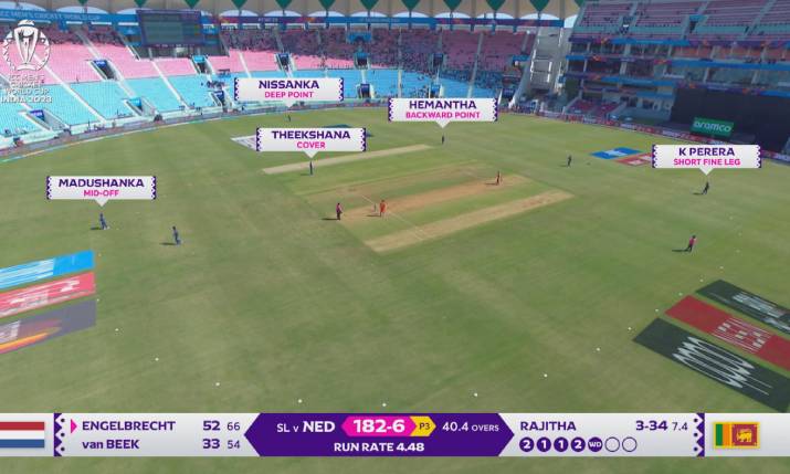 “Commentators like these gamified graphics because it helps them explain the effectiveness of fielding placements, and the challenges faced by batters in finding scoring opportunities,” says Ajesh Ramachandran, executive producer for ICC TV and senior manager for broadcast at the ICC on the ICC Men’s Cricket World Cup 2023