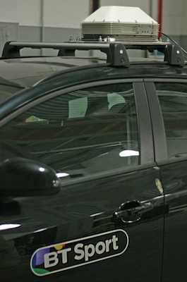 BT Sport has worked with LiveU and Garland Partners to equip three Vauxhall Astras with the LU500 and Xtender remote antenna technology. Each LU500 backpack unit can be connected wirelessly (up to 1,000 ft/300 meters) or via Ethernet to the Xtender that sits on top of each vehicle.