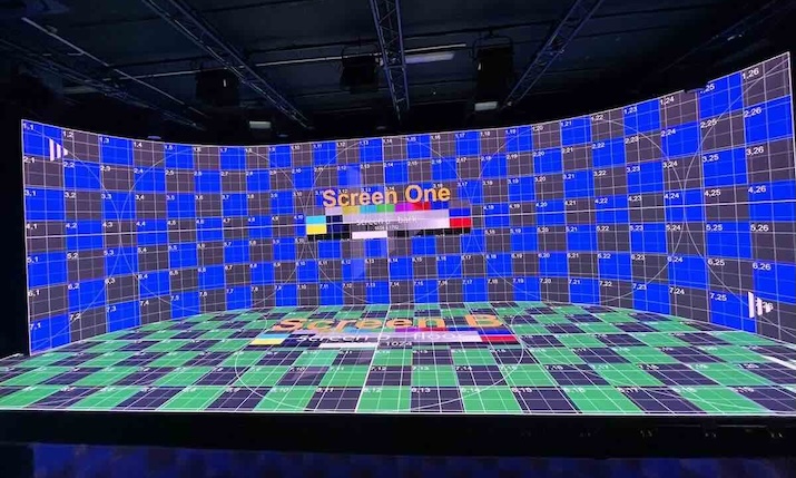 The space is equipped with four Grass Valley LDX 135 HDR cameras, Canon lenses, a HumanCrane Stype system for automated cinematic movements, Redspy tracking for precise motion control, Ultimatte 12 4K for compositing, and Sennheiser EW 6000 microphones with Dante interface.