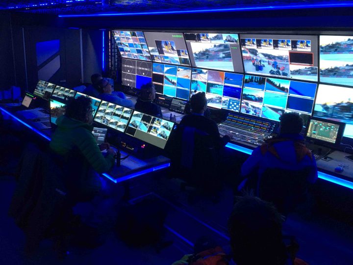 Stefano Bianco, a director and partner at Global Production said: “To follow the various competitions on the different ski fields we sent two mobile reference vehicles, the OB6 and the OB8. The OB8 unit is the last 14-metre flagship with over 70 square metres of walking space, completely in 4K UHD, capable of handling 30 cameras in 4K UHD.