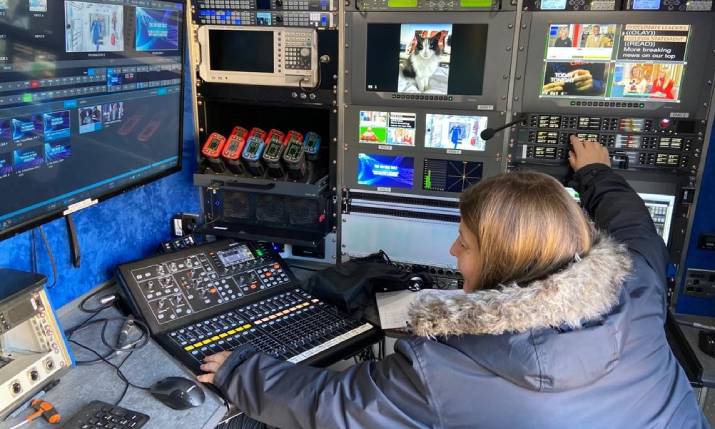 Sky Sports sound team leader Rachel Oliver hard at work in an OB
