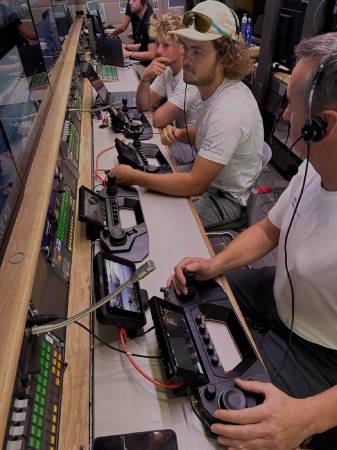 Scott says: “There was the director, Ben Spencer, next to me, so he was directing the cameras we had on shore – we had also a remote stabilised head on a hoist which had the AR on it, we had two drones flying around and we had all the onboards which were fixed, but then also the Agile cameras on the boats – so he was telling the Agile operators who were onsite in Jeddah what to could follow and asking them set up shots.”