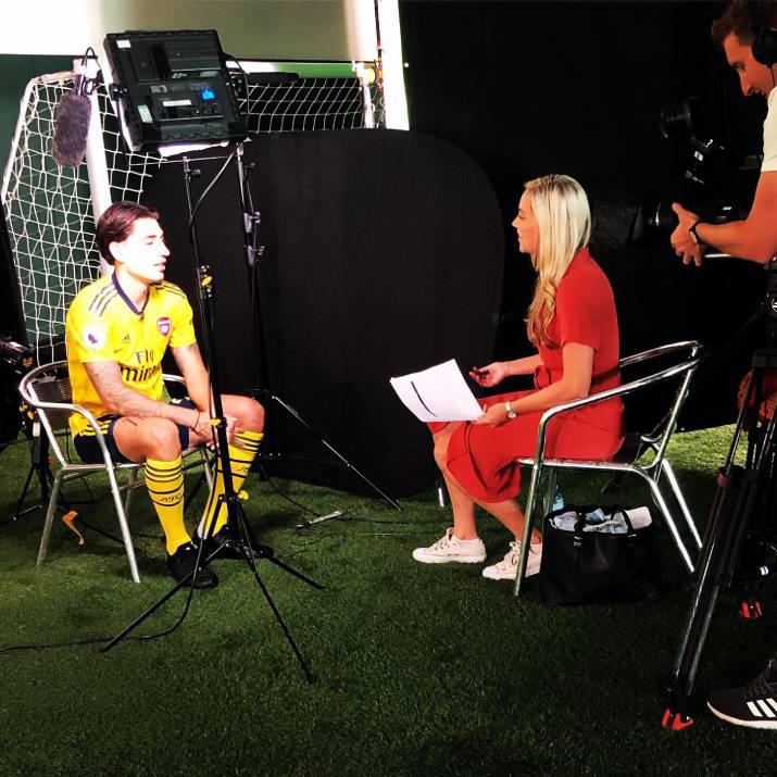 Eleanor Bishop from Premier League Productions interviewing Hector Bellerin on an Arsenal media access day