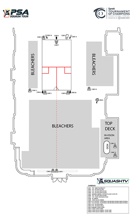 The entire production for the Tournament of Champions is not only run but staffed and supplied by the PSA itself, Beachill explains: “We do everything from start to finish ourselves. So the kits, crew, everything. It’s the same crew and it’s the same kit that pretty much travels around the world and does all our major events. I guess in the early days, [we did this] through necessity and not having the financial clout to have OB trucks everywhere, or indeed the space or the logistics to make it work. We’ve had to come up with ways of doing it ourselves, and that’s what we do now at all our major events.”
