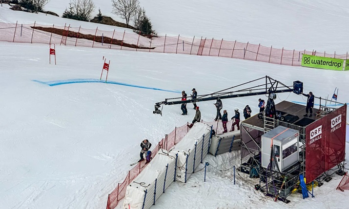 For the Ski World Cup in Saalbach, TV Skyline conducted a site visit back in September – when snow was in short supply – hiking around the course with host broadcast director Michael Koegler to work out a camera plan. Since then, and following a few updates, the current setup consists of 140 different camera positions (with each mountain-side camera equipped with two microphones) to cover the various disciplines.