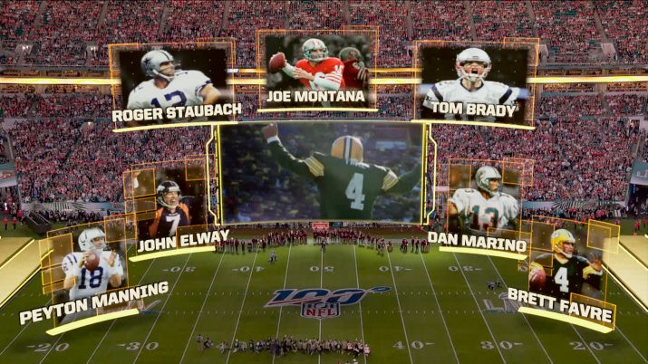 As an opener to the Super Bowl LIV, NFL planned to reveal its ‘100 All Time Team’. They approached fan experience company The Famous Group to design and choreograph the pre-show content. The brief was to celebrate the history of the sport and the contribution of those 100 players and 10 coaches, using graphics, historical film and live shots of attendees. The Famous Group looked to achieve this through extensive use of mixed reality virtual elements, and selected Pixotope, with expertise from The Future Group, as their technological solution.